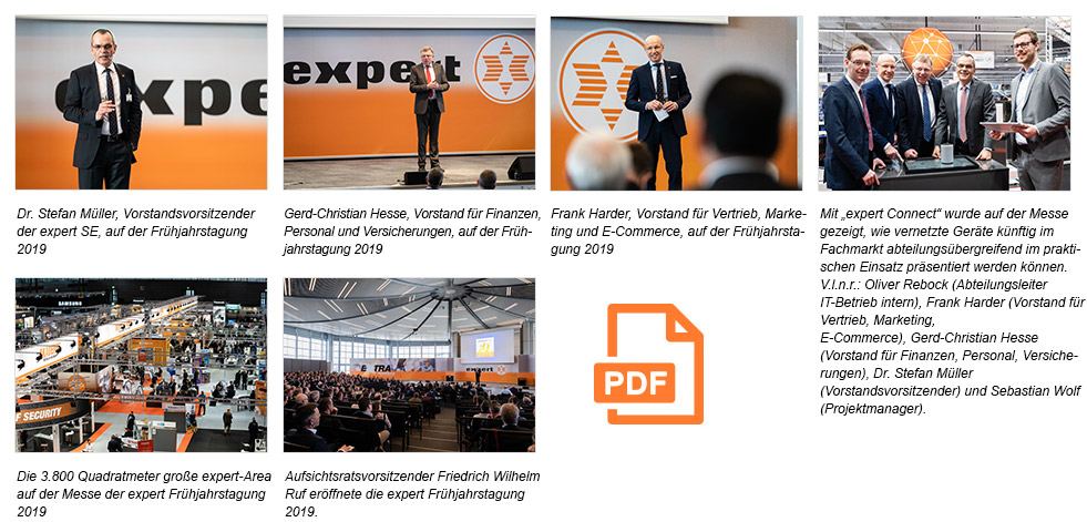 Eingangs hatte Aufsichtsratsvorsitzender Friedrich Wilhelm Ruf gemeinsam mit dem Vorstand die Branche und die eigenen Aktivitäten einer ehrlichen Bestandsaufnahme unterzogen – und sich klar zum expert-Geschäftsmodell bekannt. „Wir sind davon überzeugt, dass der Fachhandel trotz tiefgreifender Veränderungen auch in Zukunft von essenziellem Wert sowohl für Kunden als auch Industriepartner sein wird. Gerade angesichts umfassender Vernetzungsmöglichkeiten und zunehmender Komplexität der Geräte wächst die Bedeutung unserer klassischen Stärken“, sagte Vorstandsvorsitzender Dr. Stefan Müller.