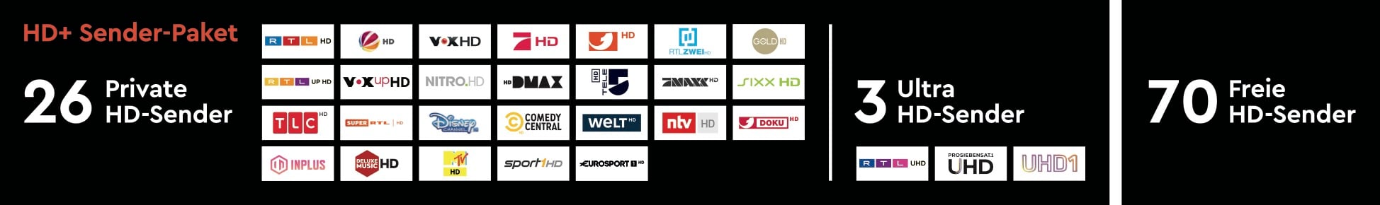 Das HD+ Modul ermöglicht den Empfang von über 25 zusätzlichen Sendern in gestochen scharfer HD-Qualität, ohne dass ein zusätzlicher Receiver benötigt wird.
