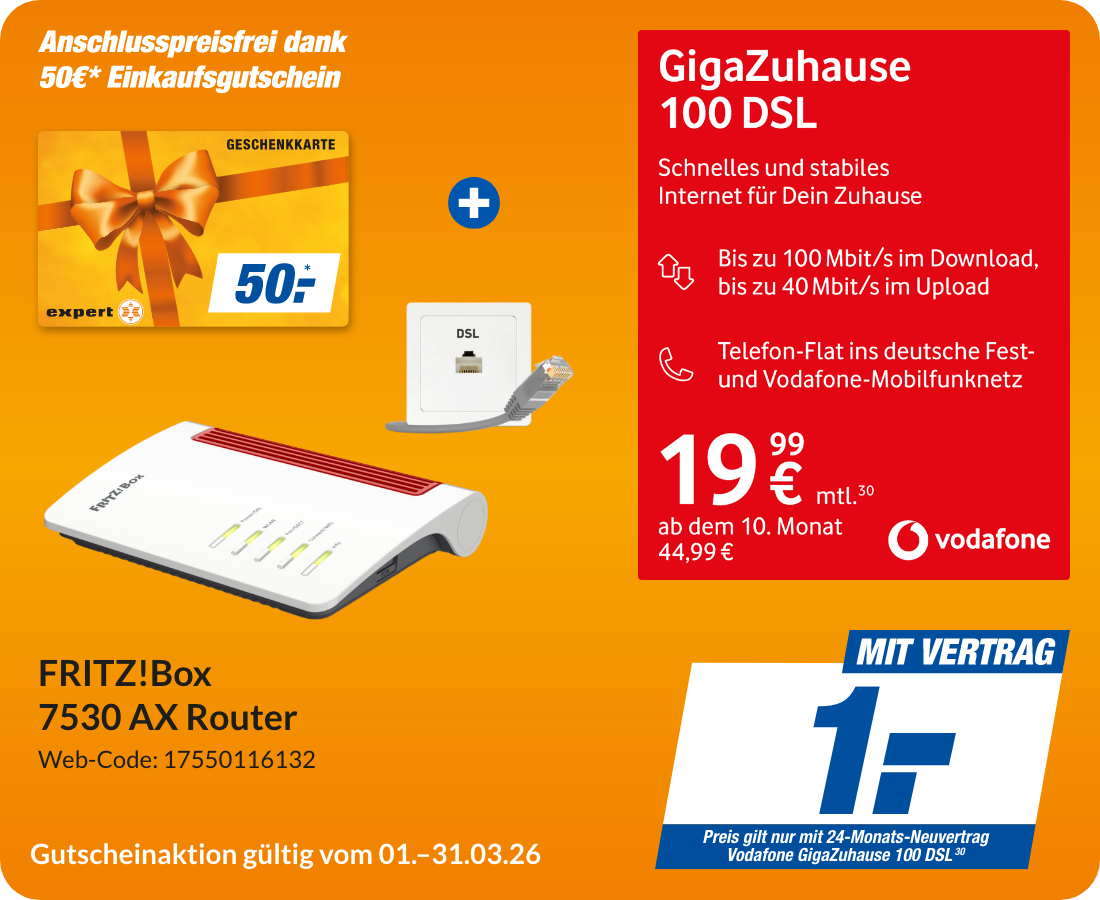 GigaZuhause 100 DSL mit FRITZ!BOX 7530 AX Router und 50€ Expert Gutschein