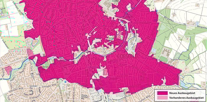 Glasfaser kommt nach Coesfeld – im Ausbaugebiet mit über 10.000 Haushalten.