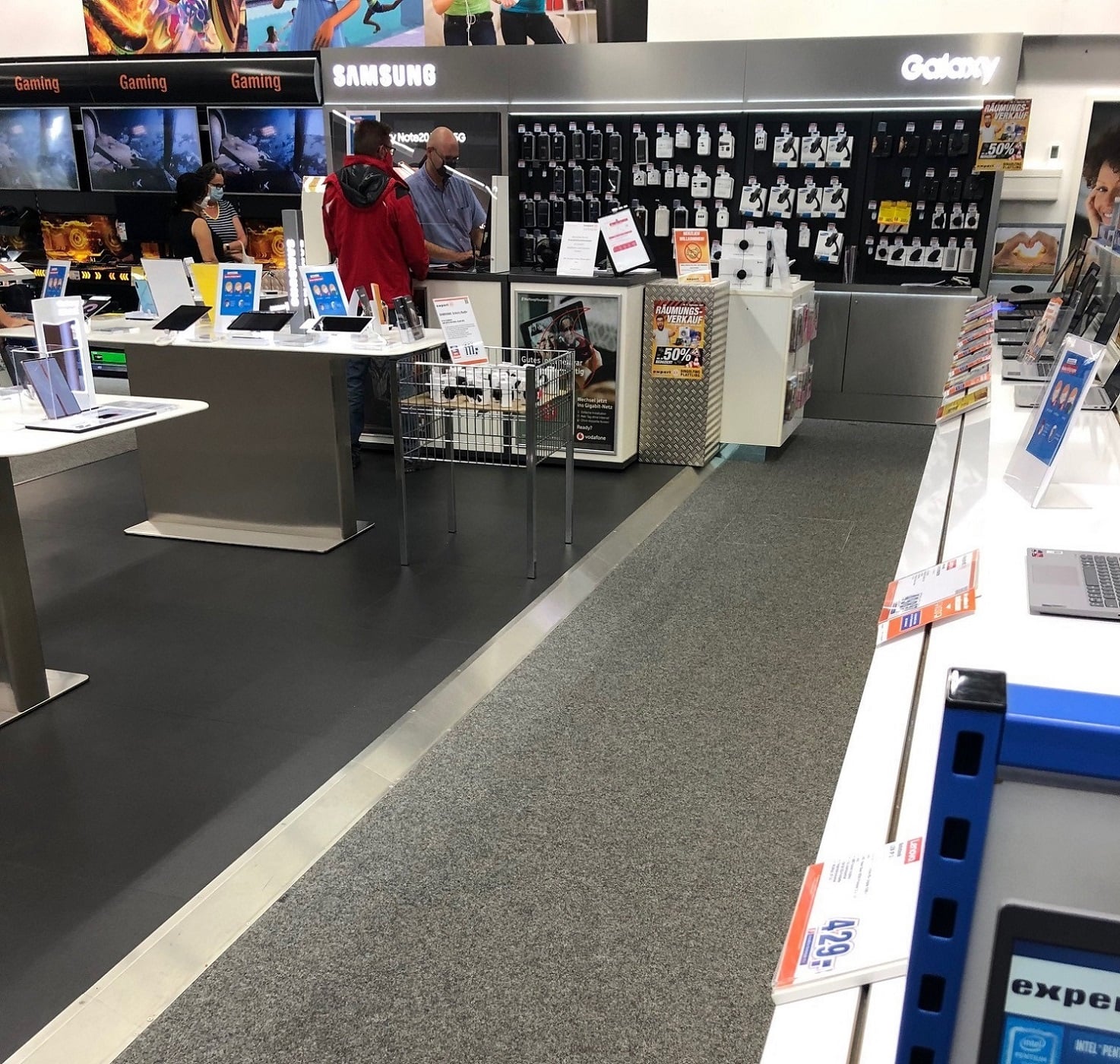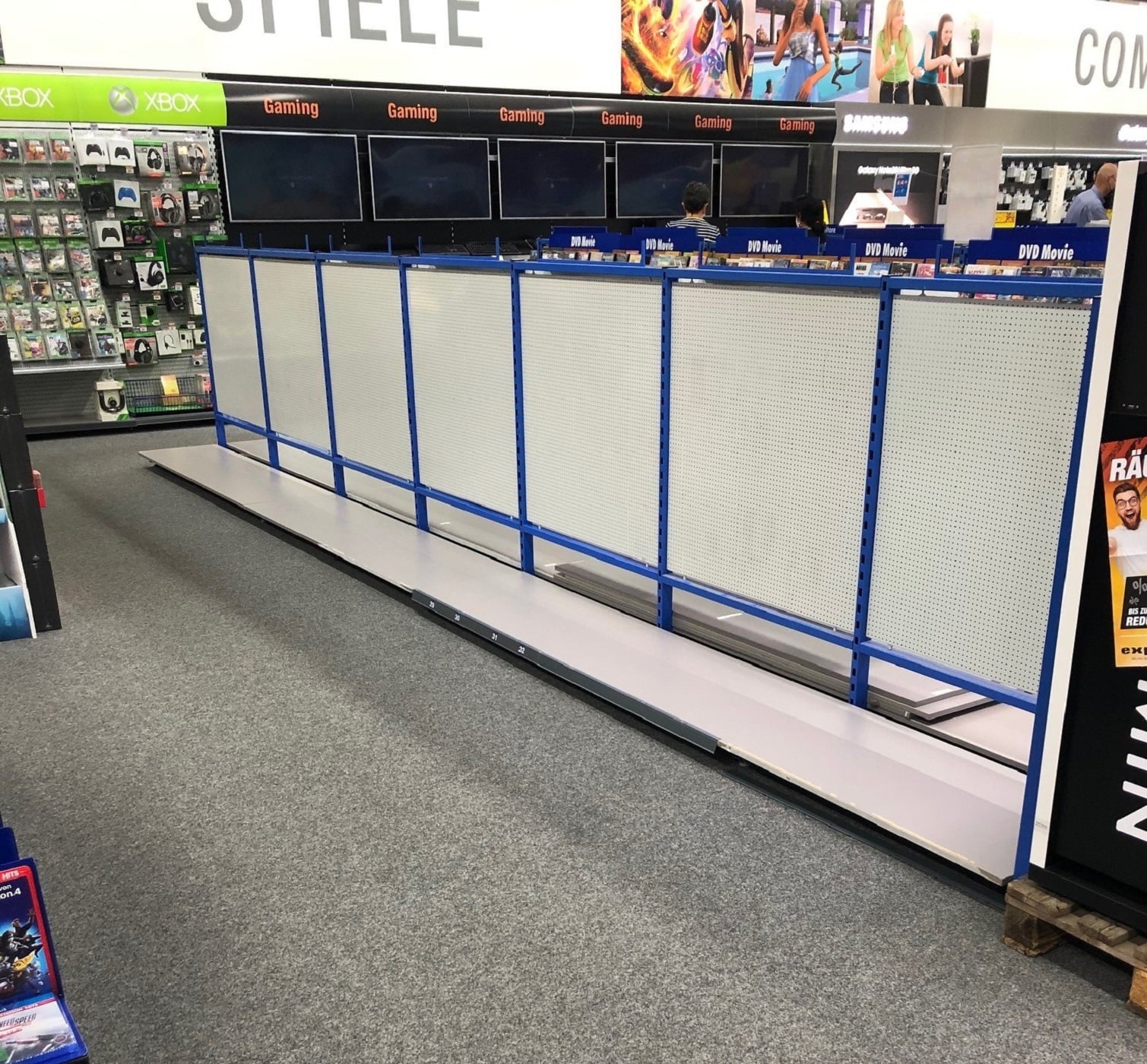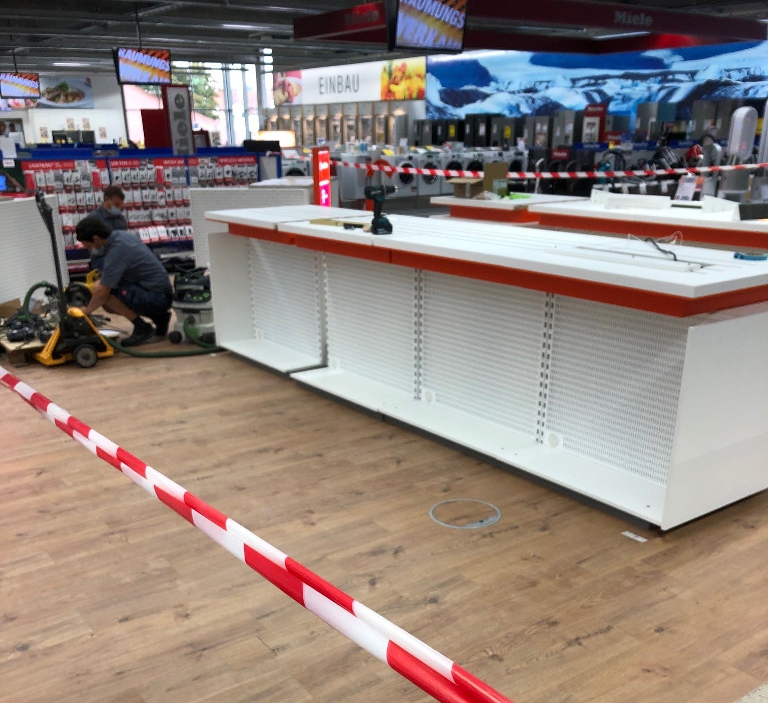 Hier entsteht gerade unsere neue Telekommunikationsabteilung. (Neuer Laminatboden und neue Warenpräsenter)