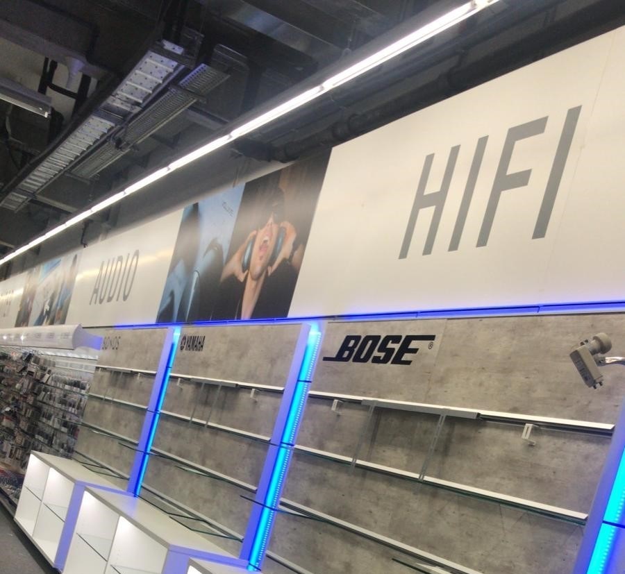 Die neuen Warenpräsenter für Bluetooth-Lautsprecher und Kopfhörer sind auch schon auf ihrem Platz.