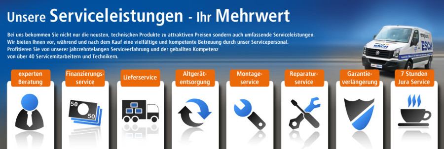 Service beginnt für uns schon mit der Beratung und dem Kauf. Darum kümmern sich ausschließlich top- ausgebildete und kontinuierlich geschulte Fachberater um ihr persönliches Anliegen. Gemeinsam mit Ihnen finden wir das für Sie passende Produkt- in unseren Fachmärkte oder bei Ihnen zu Hause.