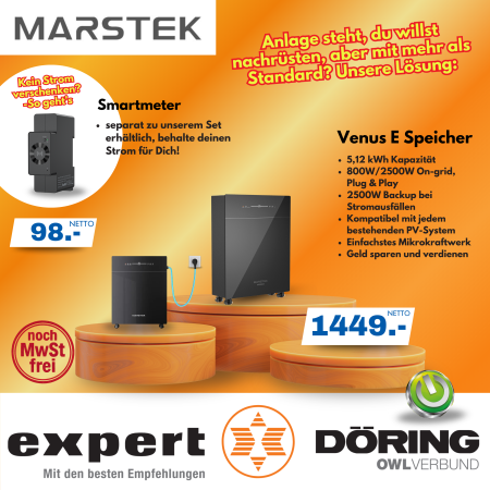 Wir von expert Döring sind Ihr erster Ansprechpartner in Löhne, Bad Salzuflen, Herford und Lübbecke bei den Themen Photovoltaik und Balkonkraftwerke. Von der ersten Beratung über den Verkauf bis hin zur Lieferung des Montagematerials sind wir für Sie da. Die Montage selbst übernehmen wir selbstverständlich auch.