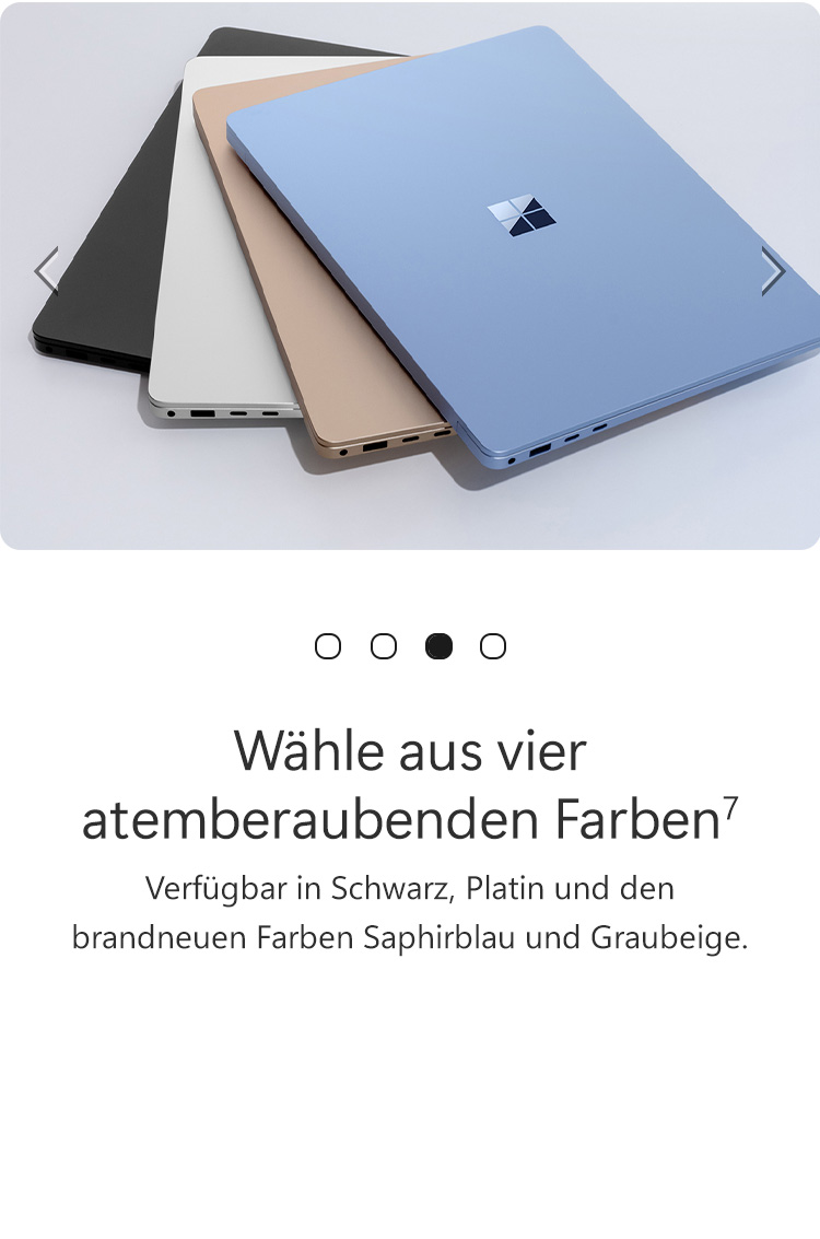 [7] Farben sind nur für ausgewählte Modelle verfügbar. Verfügbare Farben, Größen, Oberflächen und Prozessoren können je nach Geschäft, Markt und Konfiguration variieren.
