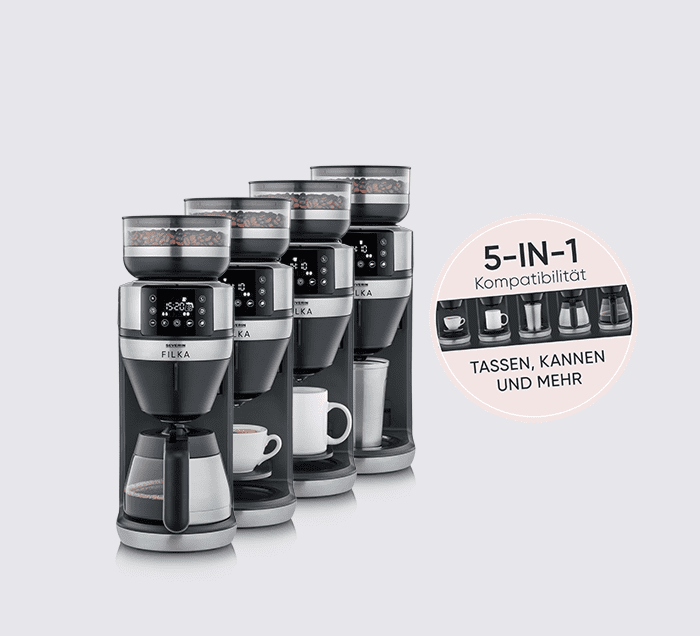 Vollautomatisch. Filterkaffee auf Knopfdruck in kleiner Tasse, großer Tasse, 2-Go-Becher, Glas- oder Edelstahl-Thermokanne. So bist du perfekt vorbereitet für individuelle Genussmomente allein, zu zweit oder mit Freunden und Familie.