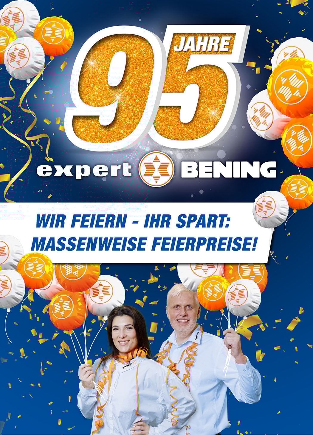 Seit 95 Jahren steht expert Bening für Technik-Kompetenz, persönliche Beratung und Top-Service – und das feiern wir groß mit euch!